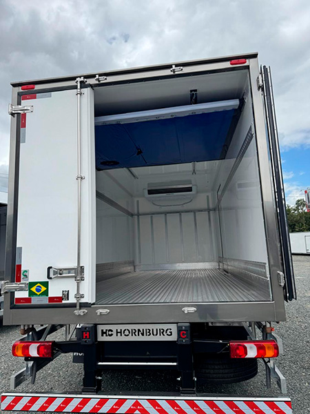 Segundo Betina Borchardt, diretora-geral da HC Hornburg, a promoção é para as carrocerias ¾ Paleteira Frigorífica, modelos de 5,5 m e 6,2 m de comprimento. “Os produtos, com pronta entrega, são equipados com piso canelado em alumínio, porta lateral e porta traseira que abre em três partes, conferindo mais agilidade às operações logísticas”, complementa a executiva.