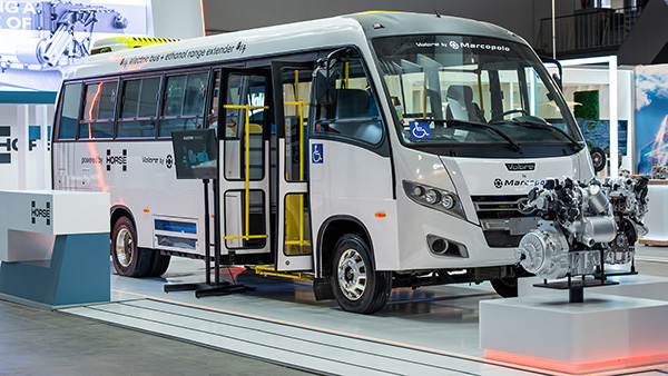 Marcopolo expõe micro-ônibus híbrido na Busworld Europa 2025